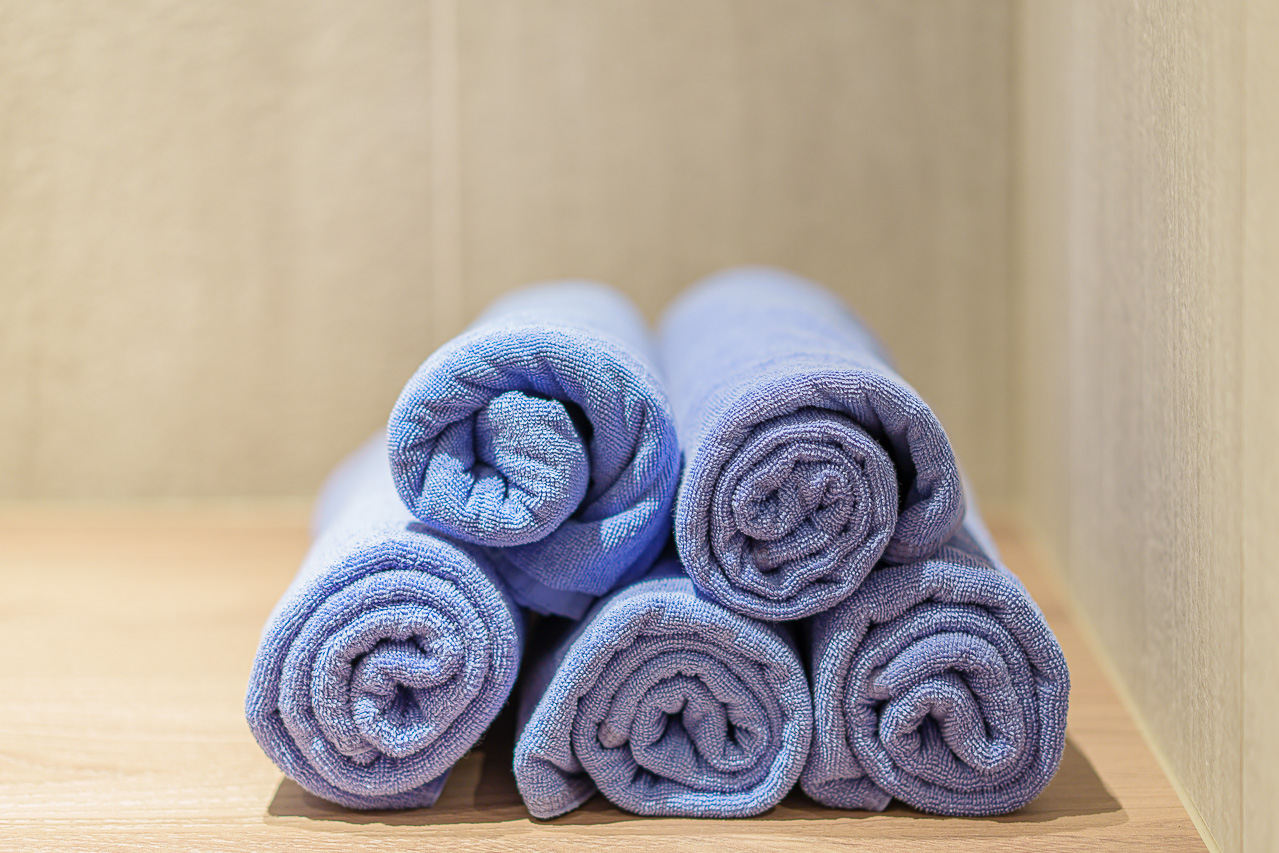 타월은 3층의 카운터에서 받을 수도 있고, 여기에 준비 되어 있는 것으로 이용이 가능합니다.