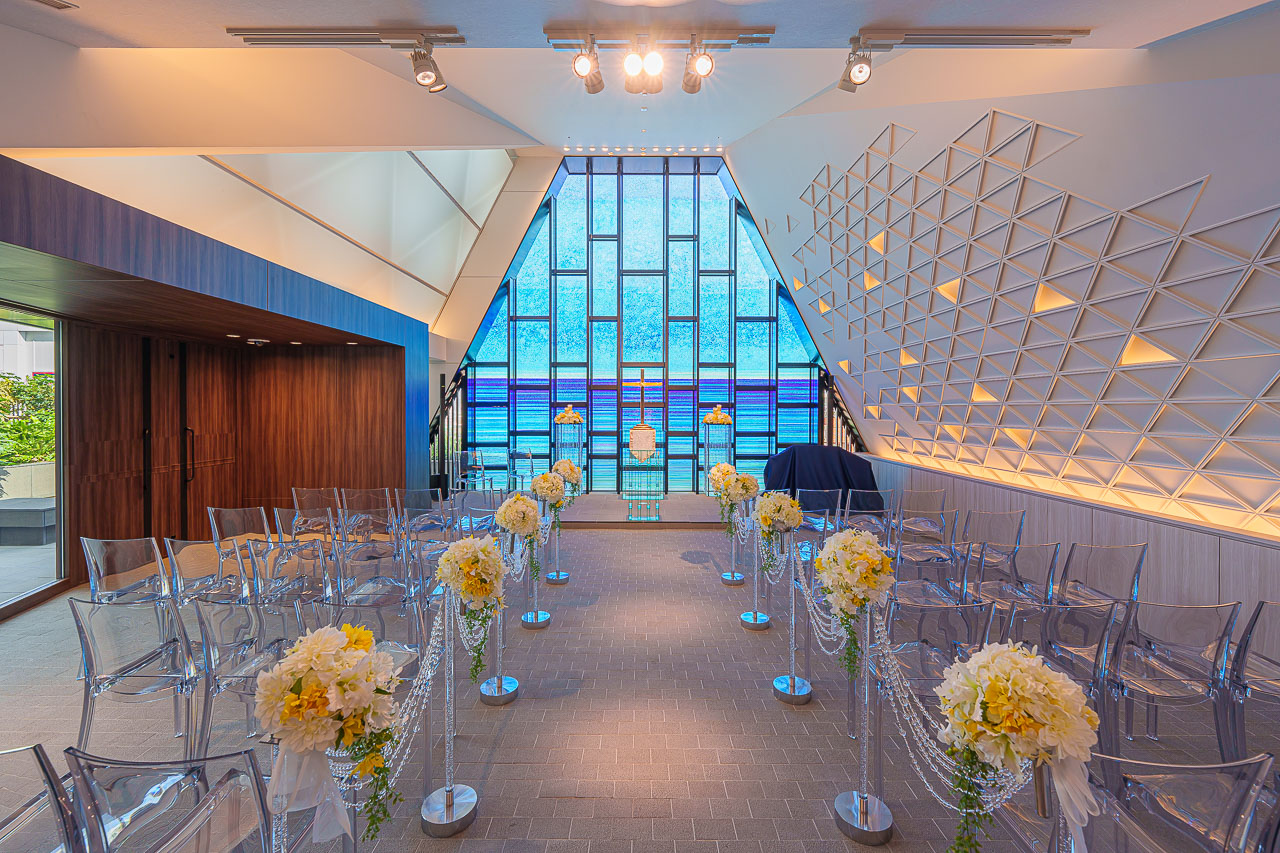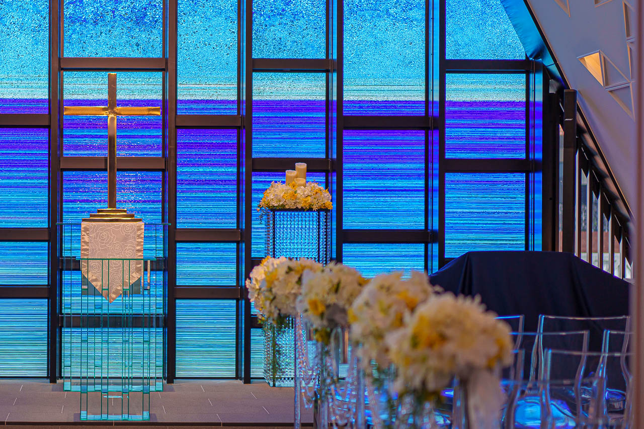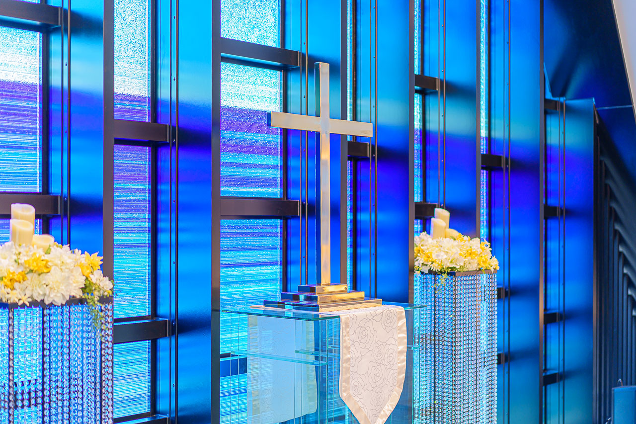 수평선을 모티브로 한 스테인드 글라스와 십자가도 인상적입니다.