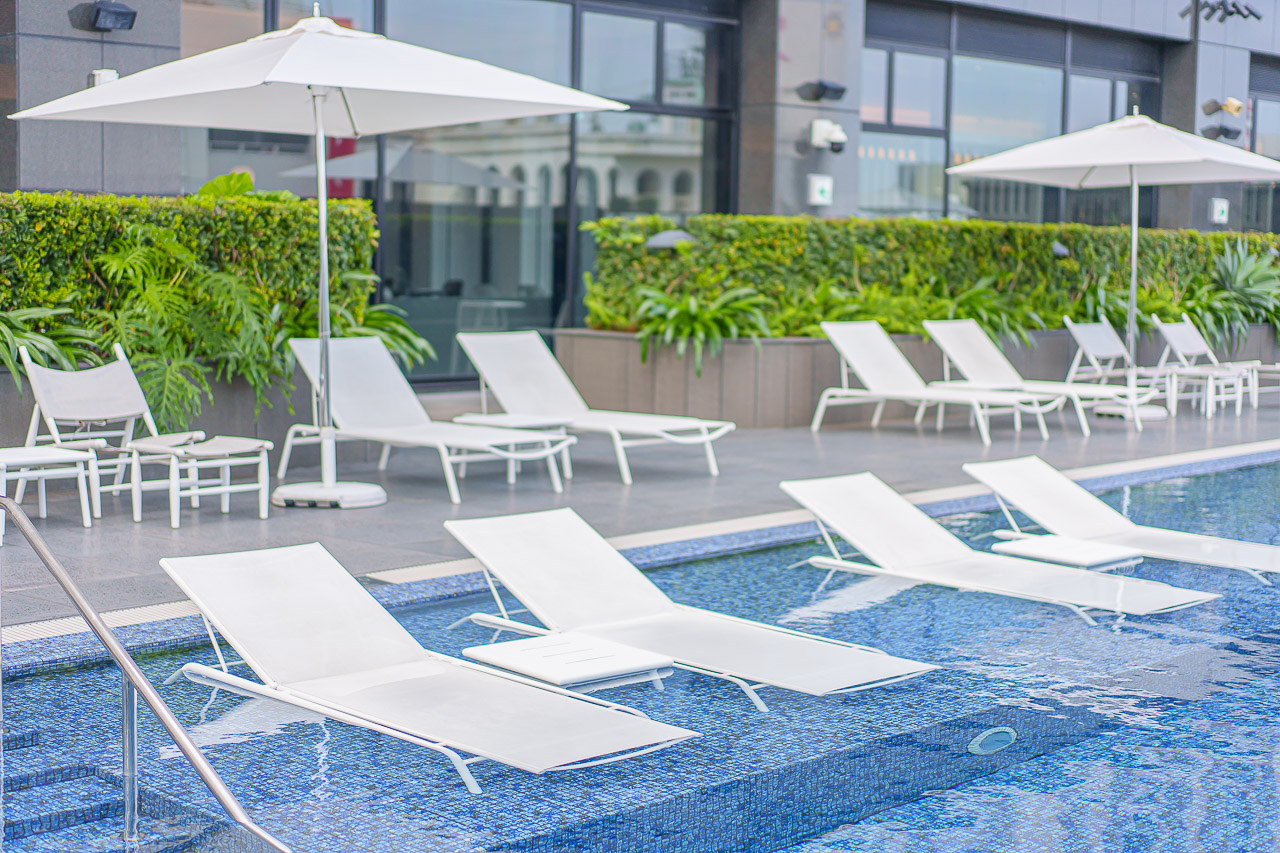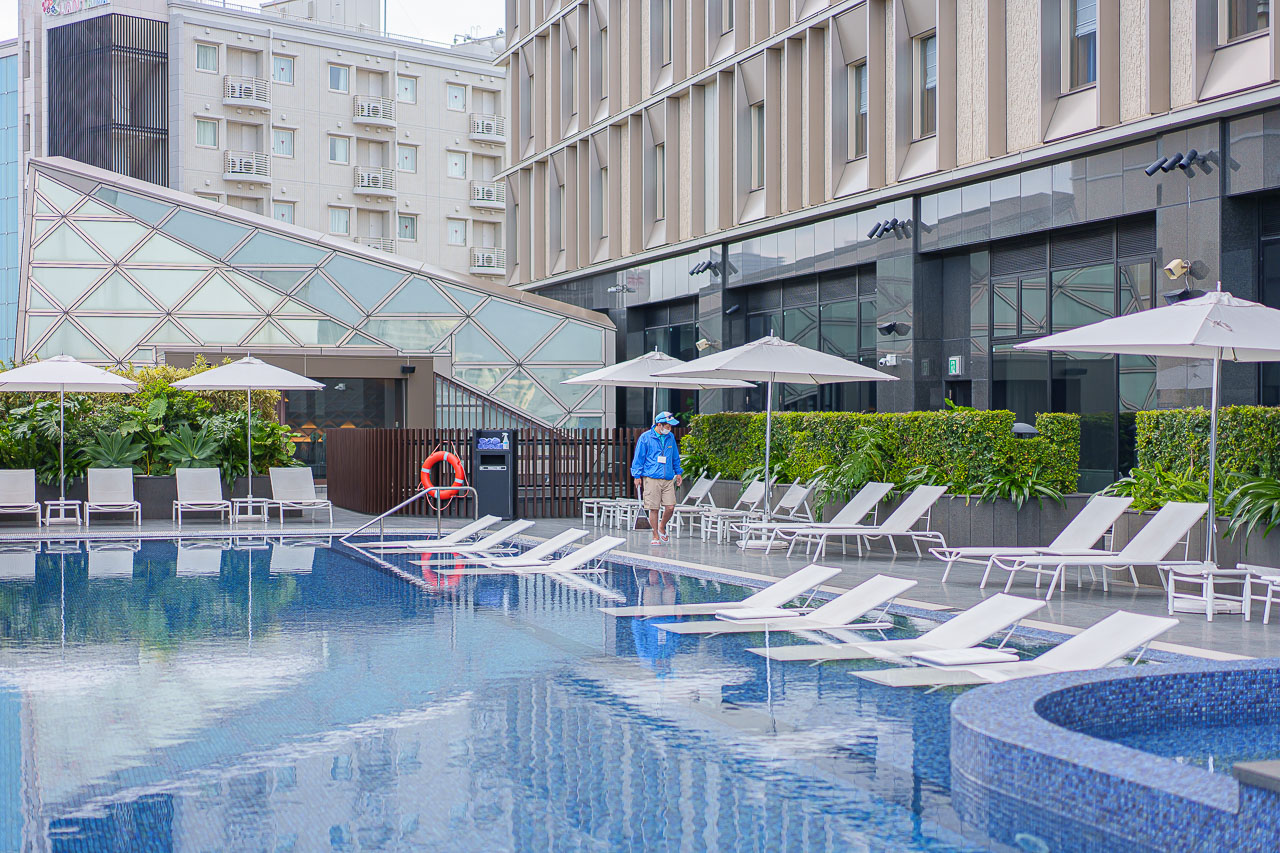 도심 한가운데 하늘이 보이는 풀장에서 잠깐 느긋하게 보내는 것만으로도 힐링이 됩니다.
