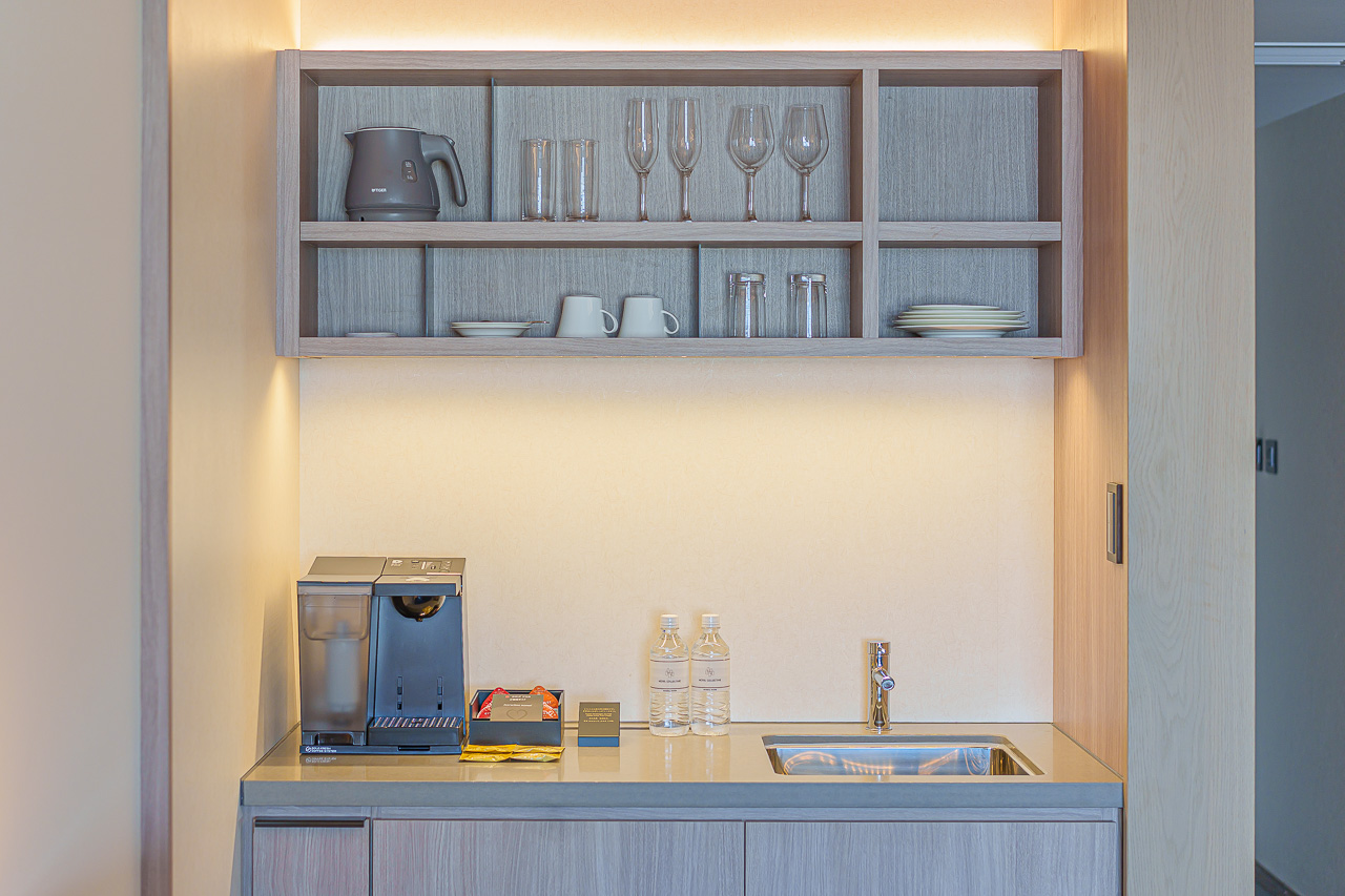 쥬니어 스위트 룸에는 주방이 딸려 있어, 조리 이외의 간단한 작업이 가능합니다.