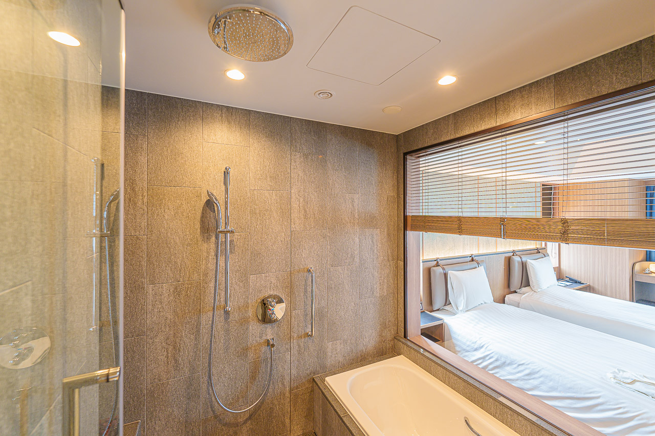 보통은 욕조에 작은 티비를 설치되어 있는데, 욕조에서 방의 티비를 보는 것은 새로운 경험.