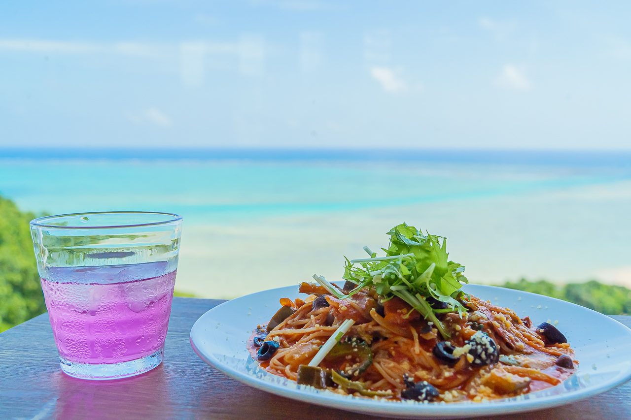한 없이 푸른 코발트블루를 바라보며 오키나와 7대 파워 스폿에서 즐기는 맛있고 건강한 이탈리안 요리는 몸도 영혼도 맑아지는 느낌입니다.