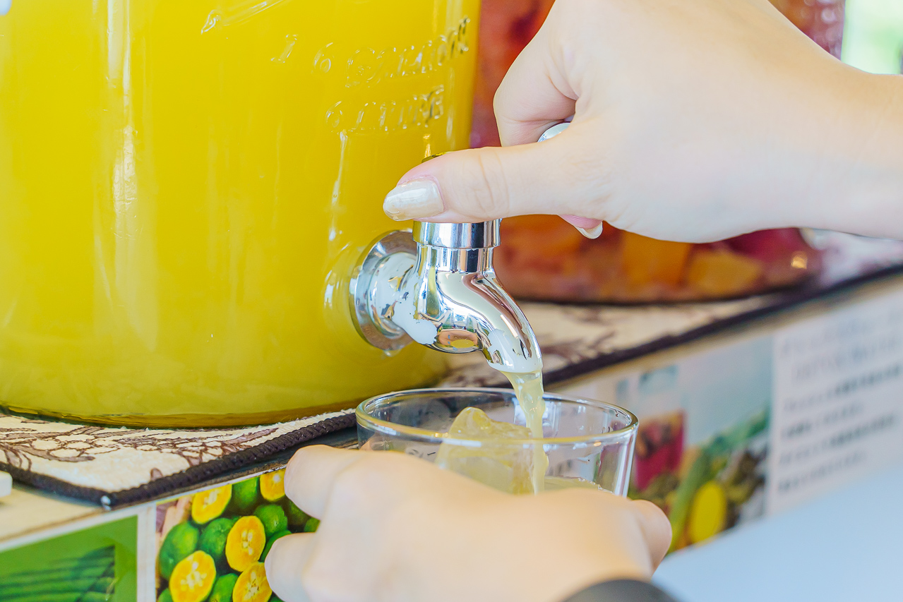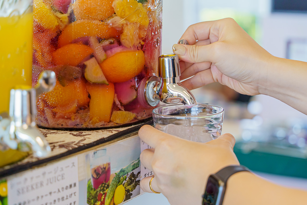 드링크는 디톡스 워터와 시쿠와사 주스, 그리고 오렌지 주스가 있었던 거 같습니다.