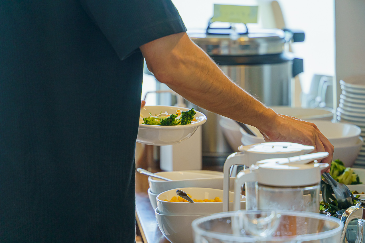 런치는 샐러드 바와 드링크 바, 그리고 수프가 포함되어 있습니다.