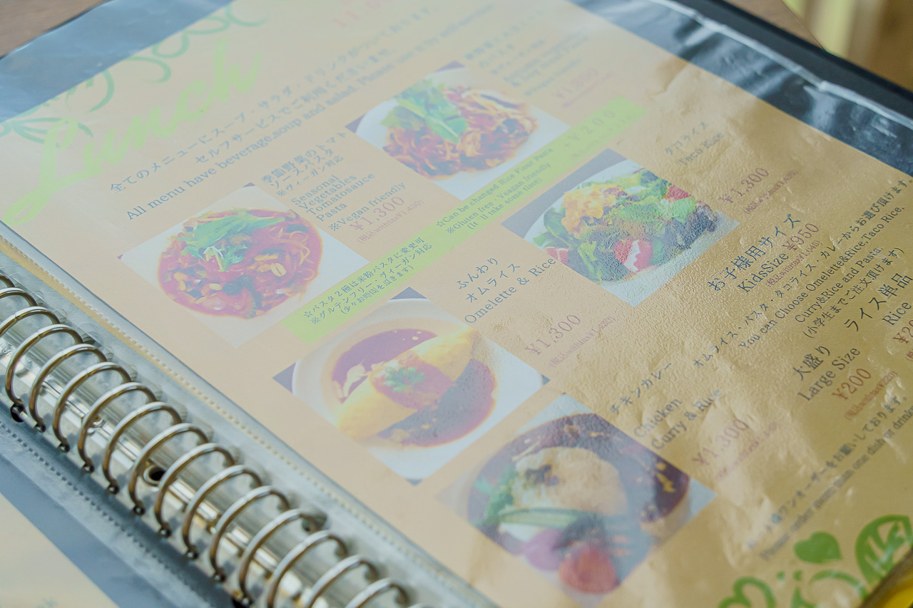 가게의 메인 메뉴인 "계절 야채가 가득 들어간 토마토 파스타"와 오키나와 소울 푸드인 "타코 라이스"를 시켰습니다.