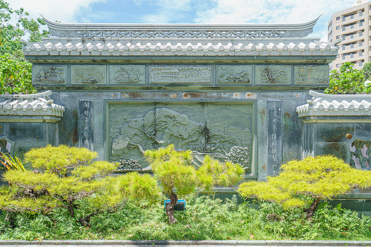 후쿠슈엔은 1992년에 나하와 "중국 푸저우"가 자매 도시 관계 를 맺은 지 10주년을 기념하여 건설되었습니다.