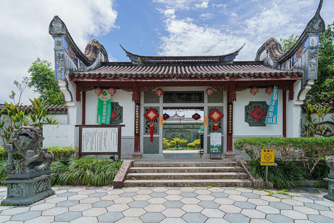 후쿠슈엔은 1992년에 나하와 "중국 푸저우"가 자매 도시 관계 를 맺은 지 10주년을 기념하여 건설되었습니다.
