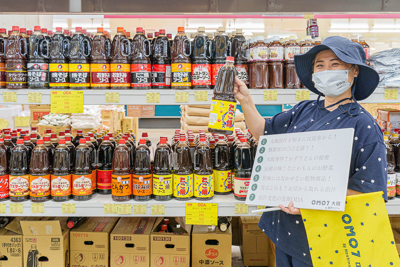 소스를 좋아하는 오사카 주민들을 위해 많은 종류의 소스가 가득 모여 있었습니다.