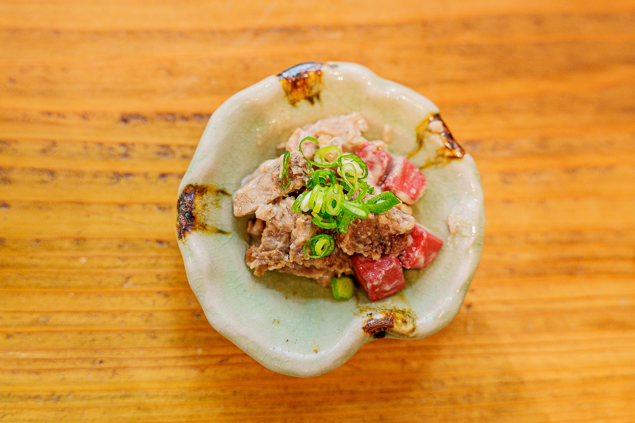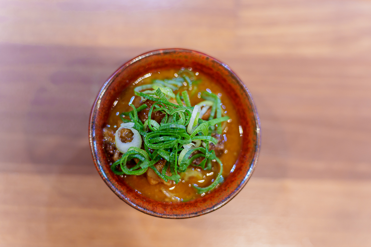 소의 힘줄을 일본식 된장인 미소에 잘 졸인 음식으로 술안주에 최고입니다.