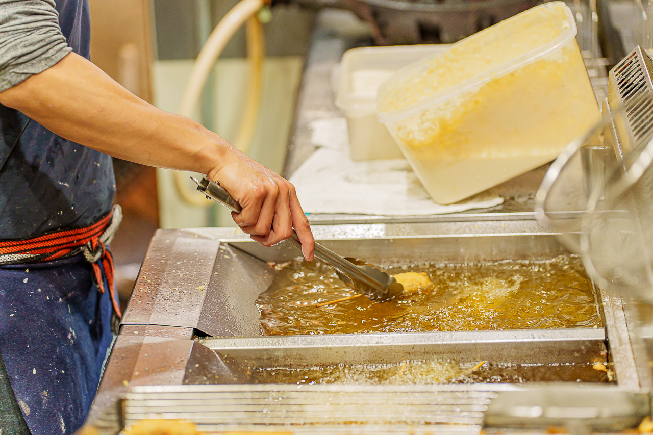 쉴 새 없이 튀겨지는 쿠시카츠를 보면 군침이 돕니다.