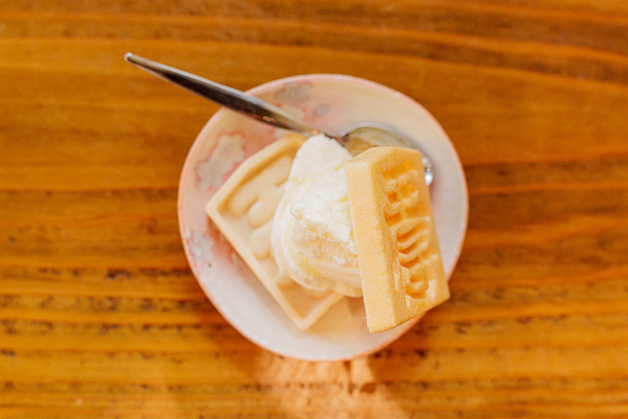 가게 명물 모나카 아이스크림 중 택 1을 하여 먹을 수 있습니다.