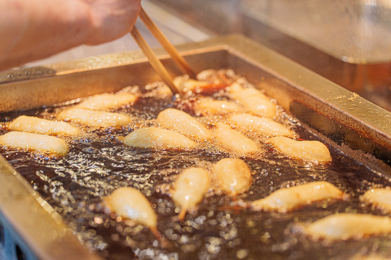 쉴 새 없이 튀겨지는 쿠시카츠를 보면 군침이 돕니다.