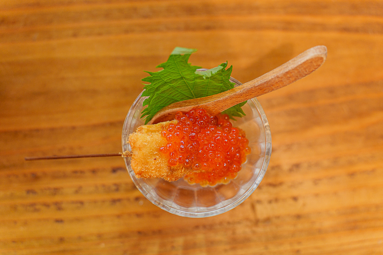 두 번째는 연어알이 가득 올라간 연어 쿠시카츠.