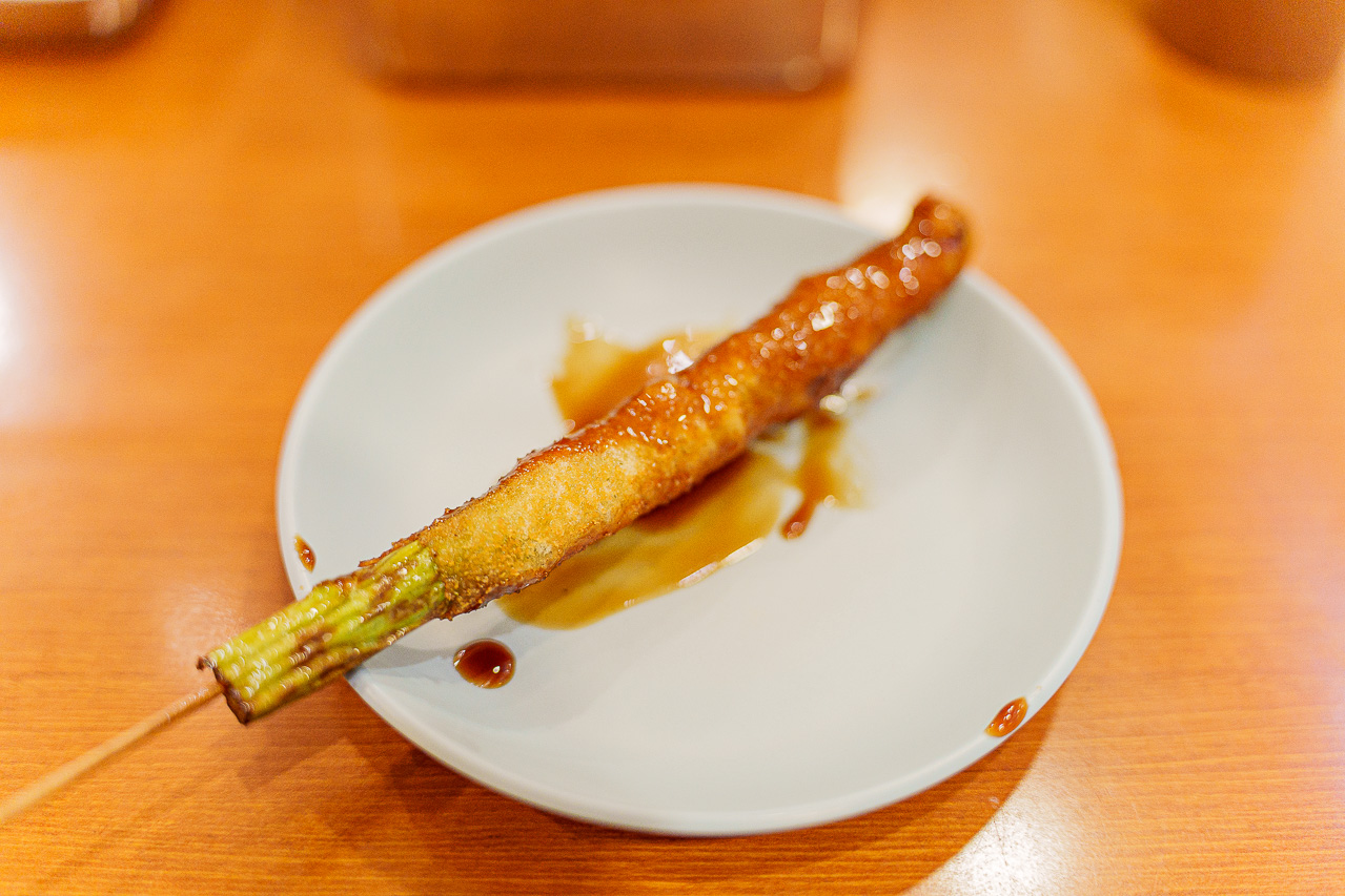 오리지널 쿠시카츠와 아스파라거스, 그리고 닭똥집을 시켰습니다.