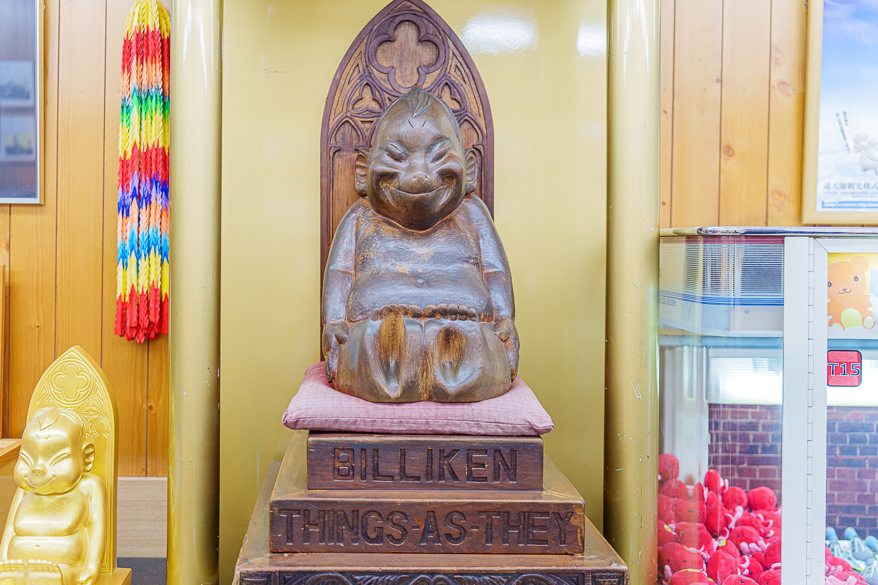 당시 빌리켄은 행운의 마스코트로 미국에서 많은 인기를 누렸는데, 한 오사카의 사업가가 미국의 유행을 받아들여 행운의 신으로 부각시켰고 오늘날까지 사랑을 받고 있습니다.