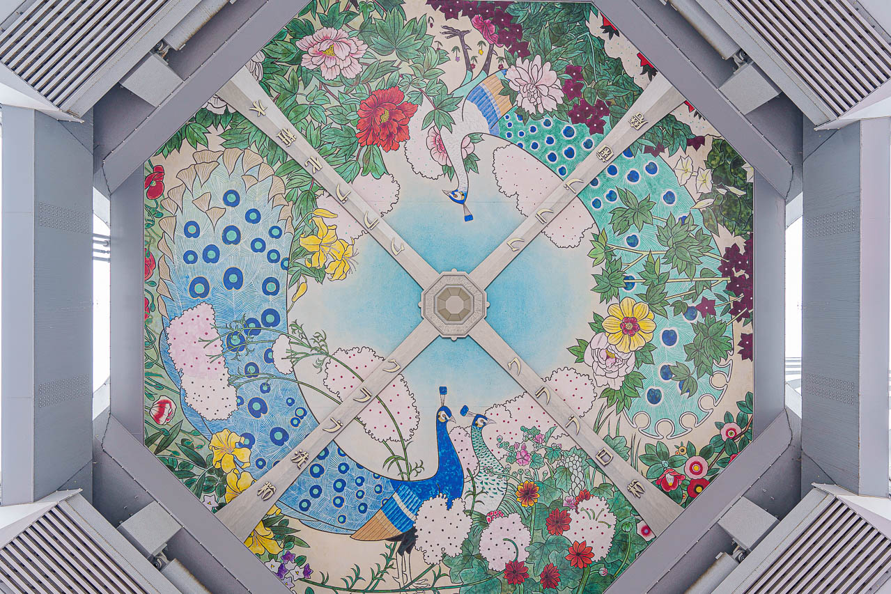 위를 올려다보면 화려한 그림이 그려져 있습니다.