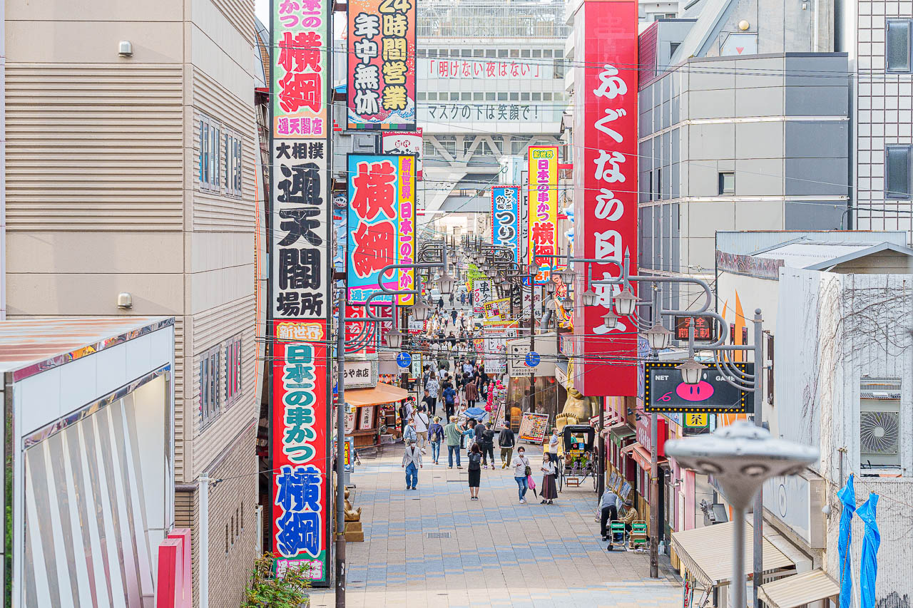쟌쟌 요코초에서 나오면 레트로 한 분위기가 물씬 풍기는 신세카이가 나타납니다.
