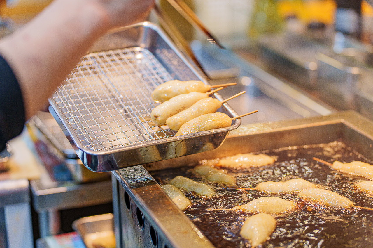 쉴 새 없이 튀겨지는 쿠시카츠를 보면 군침이 돕니다.