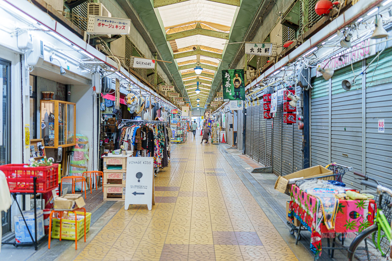 신세카이의 조금 더 깊숙한 곳으로 들어가면 "신세카이 시장"이 나옵니다.