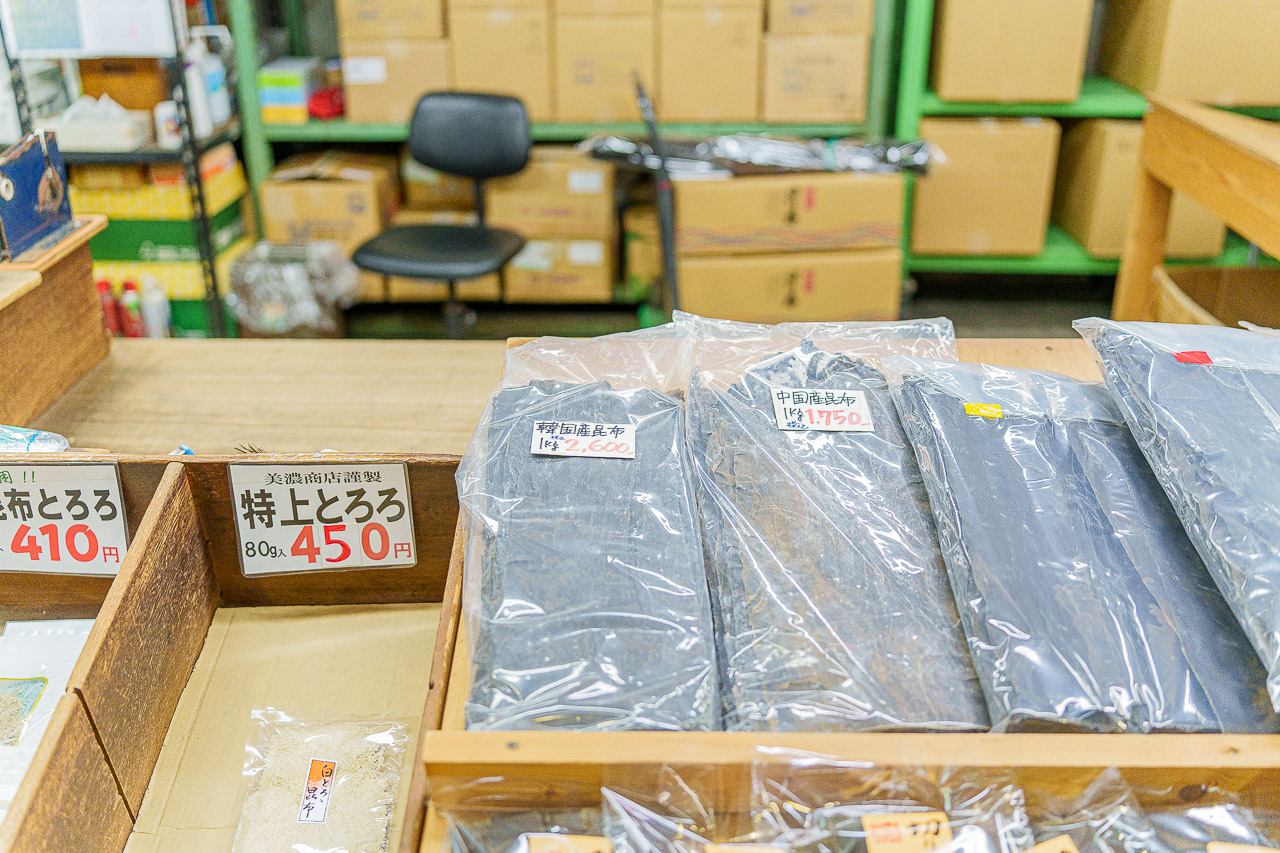 "맛있는 다시 국물"을 찾는 투어는 다시마 가게에서 부터 시작됩니다.