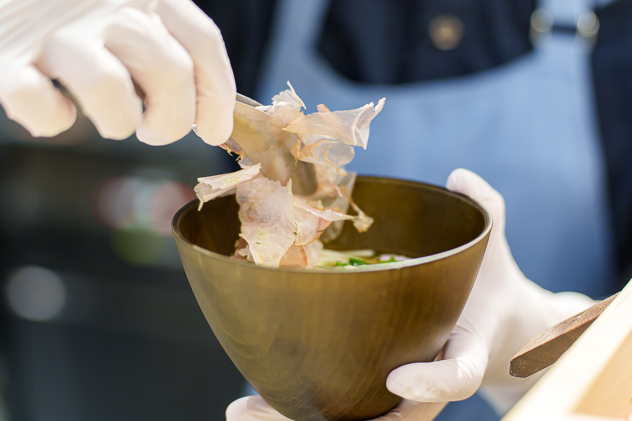 가다랑어 포가 많이 쓰여, 직원 분이 슬라이스 하는 것을 보는 것도 하나의 재미입니다.