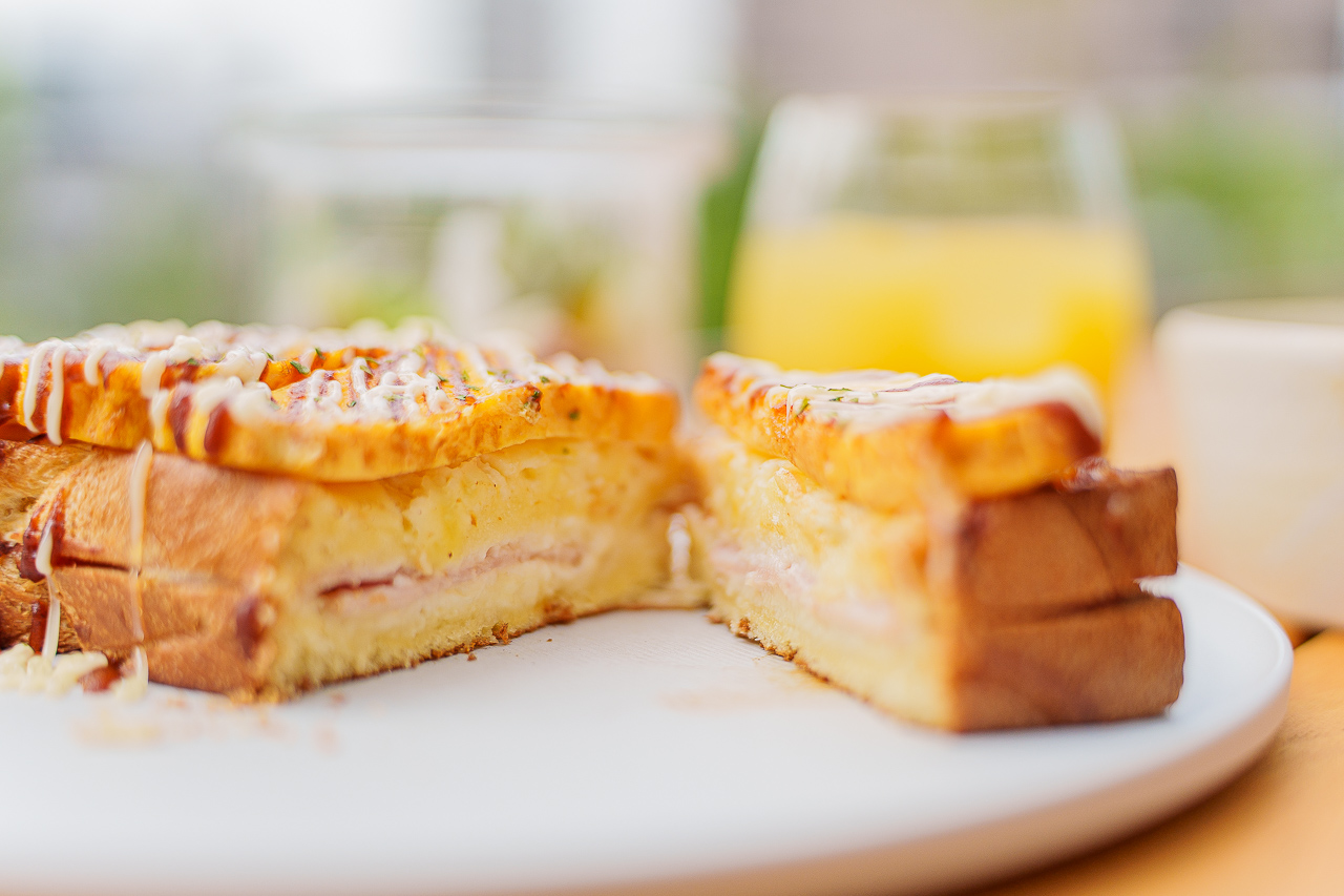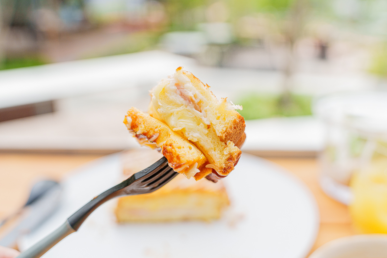 토스트 내부에는 햄과 치즈가 가득 들어 있어 생각보다 양이 많습니다.