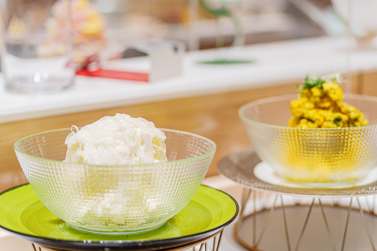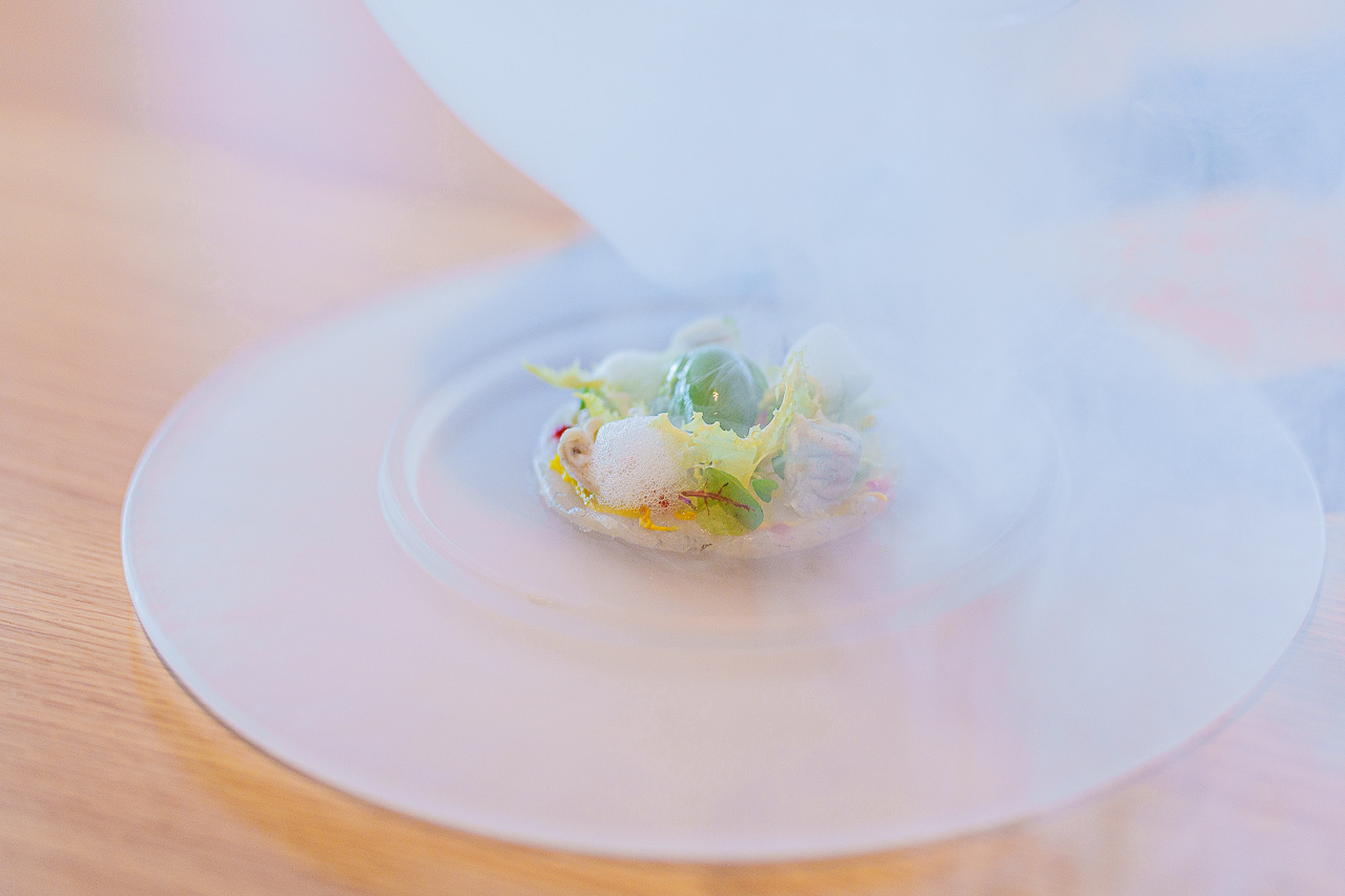 처음 요리가 나왔을 땐 어리둥절한데 둥근 돔 모양의 유리뚜껑에 수증기가 가득 들어가 있어, 먹으려고 열면 수증기가 퍼지며 요리가 나타납니다.