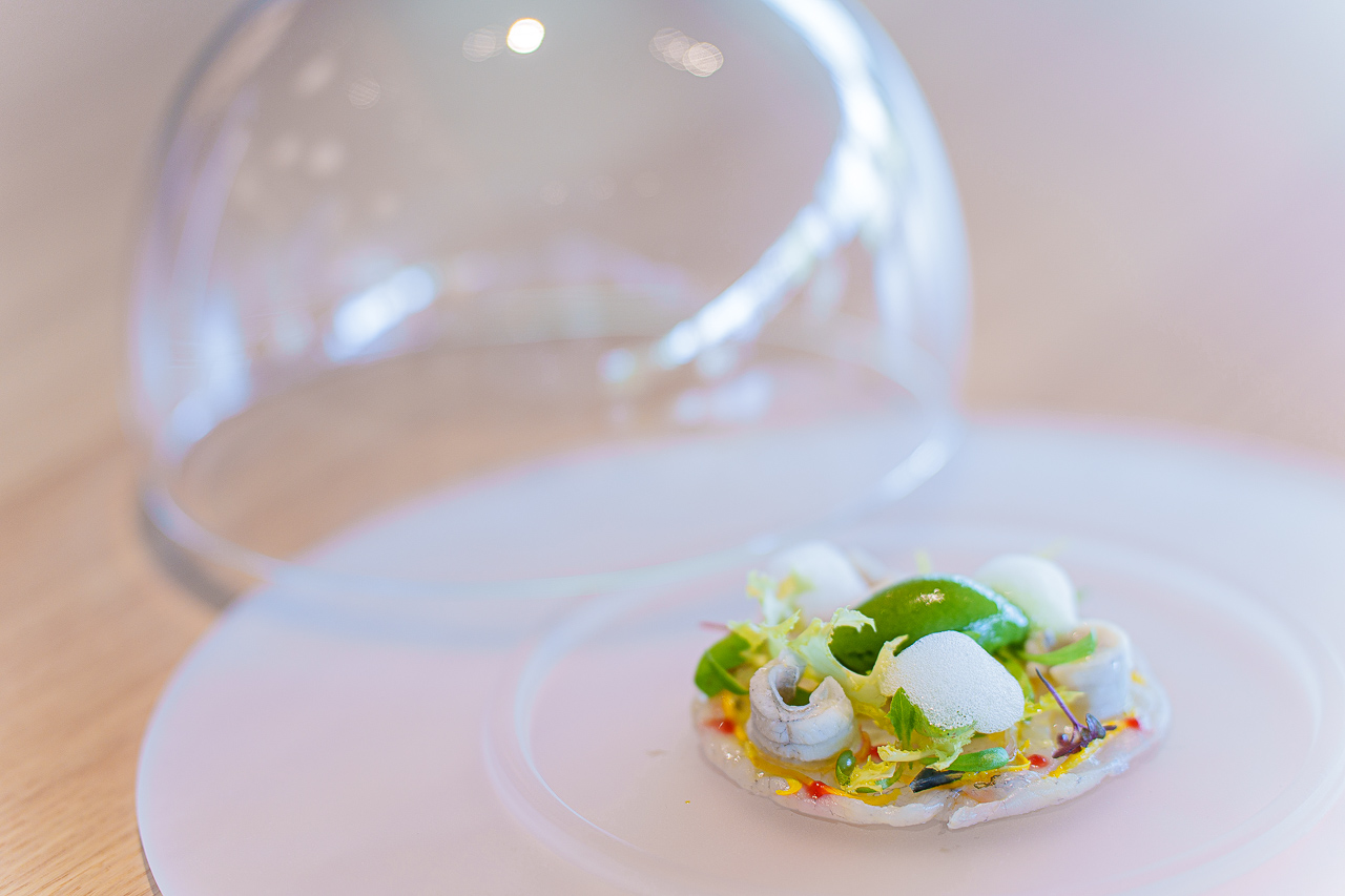 처음 요리가 나왔을 땐 어리둥절한데 둥근 돔 모양의 유리뚜껑에 수증기가 가득 들어가 있어, 먹으려고 열면 수증기가 퍼지며 요리가 나타납니다.