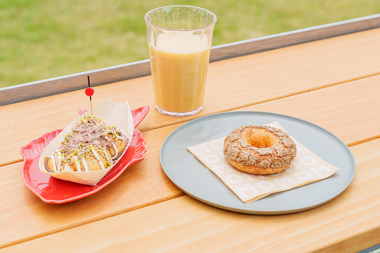 오사카 명물 믹스 주스와 도넛을 닮은 슈크림, 그리고 타코야키를 닮은 치즈 케이크.