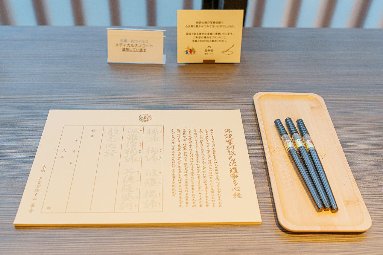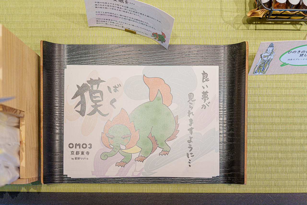 호텔 시설 어딘가에 어메니티가 준비되어 있는데 "OMO3 교토 도지 by 호시노 리조트"는 만다라 아트 앞에 준비되어 있네요.