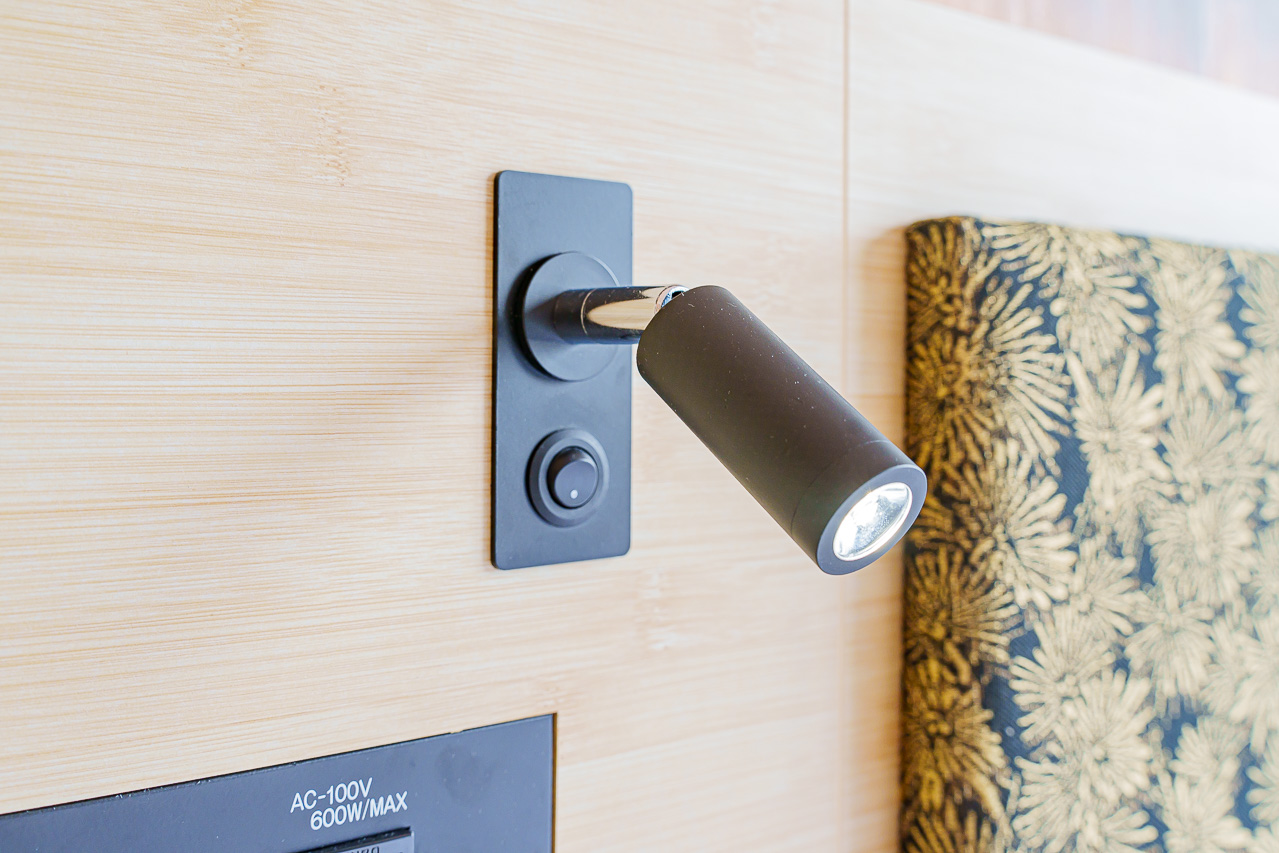 머리맡에는 간접 조명과 독서등이 설치되어 있어 너무 밝지도 어둡지도 않은 느낌입니다.