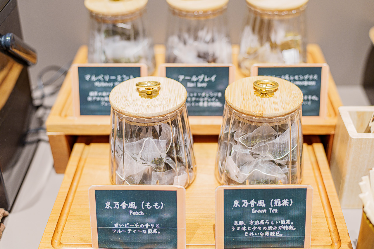 라운지에는 차로 유명한 교토 답게 여러 종류의 차가 준비되어 있습니다.