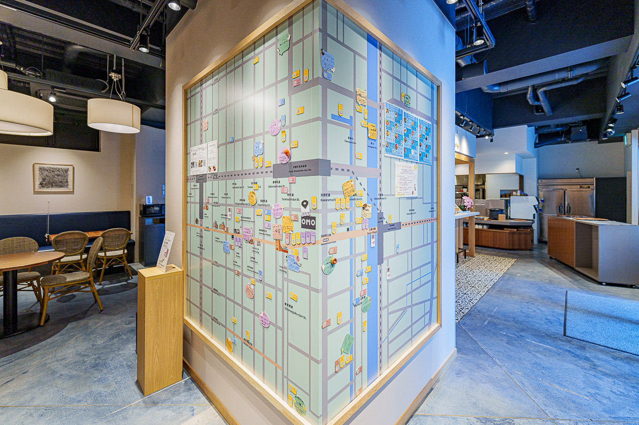 호텔 스탭이 직접 발굴한 맛집이나 명소가 게시되어 있는 보드인데 OMO5 교토 산조 by 호시노 리조트에는 카페가 많았습니다.