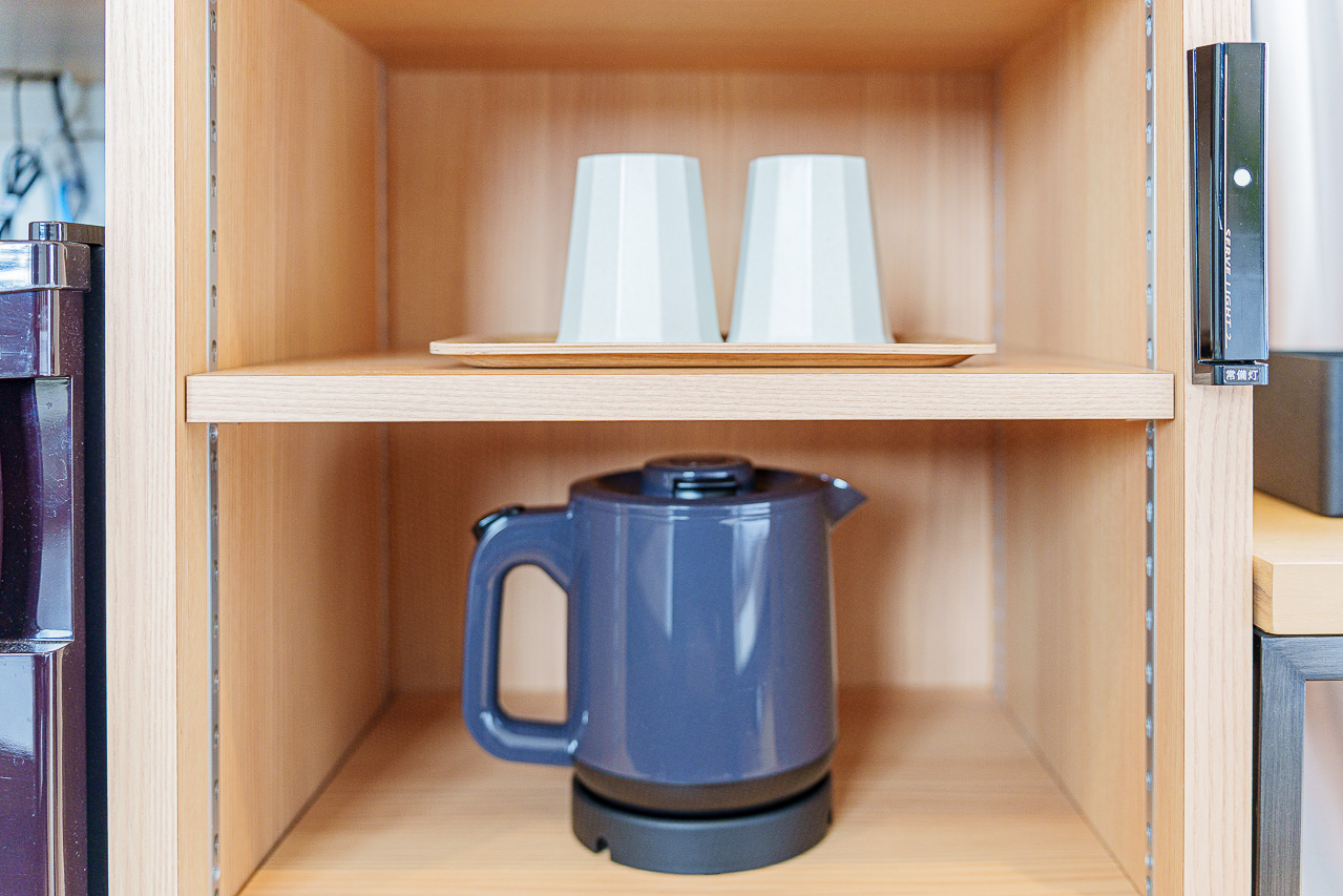 티비의 선반 쪽에는 커피포트와 컵이 있었지만 OMO베이스의 라운지가 편리하여 이용은 하지 못했습니다.