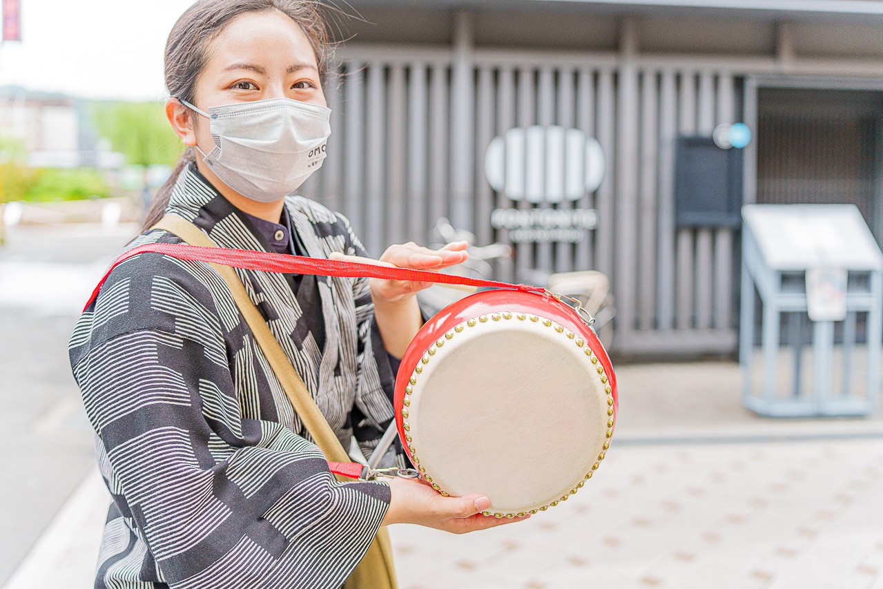 북을 보여주며 가죽(일본어로 강과 발음이 같음)과 가죽 사이에 있는 마을이라고 해서 "톤톤 마치"라고 불린다며 잊히지 않을 설명을 해 줍니다.