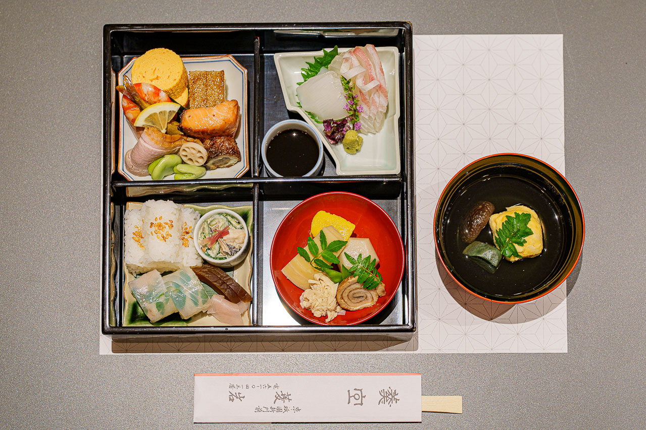예절과 형식을 깐깐하게 따지는 기온에서는 도시락의 방향도 정해져 있어, 요 금빛 나는 줄무늬가 먹는 사람 쪽으로 향해야 합니다.