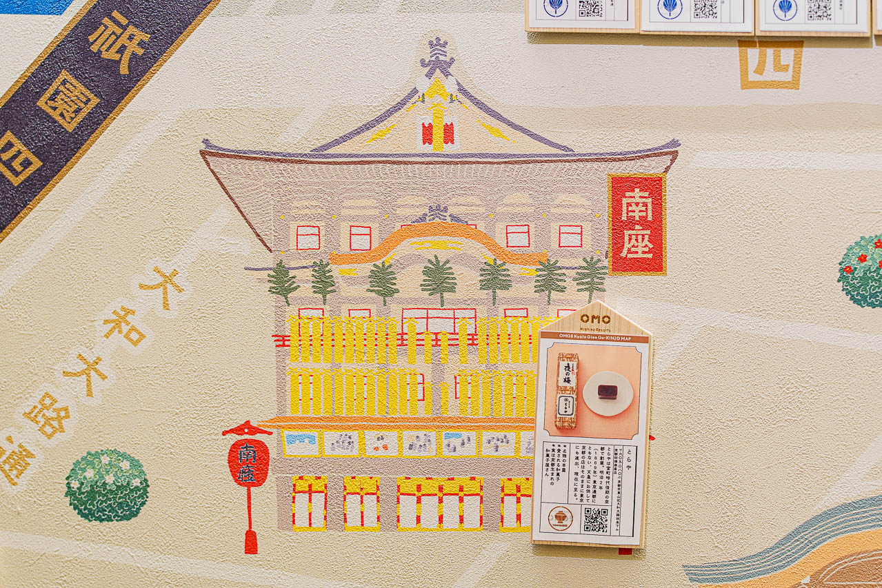 벽면에는 기온의 유명한 사찰을 상징하는 일러스트가 그려져 있습니다.