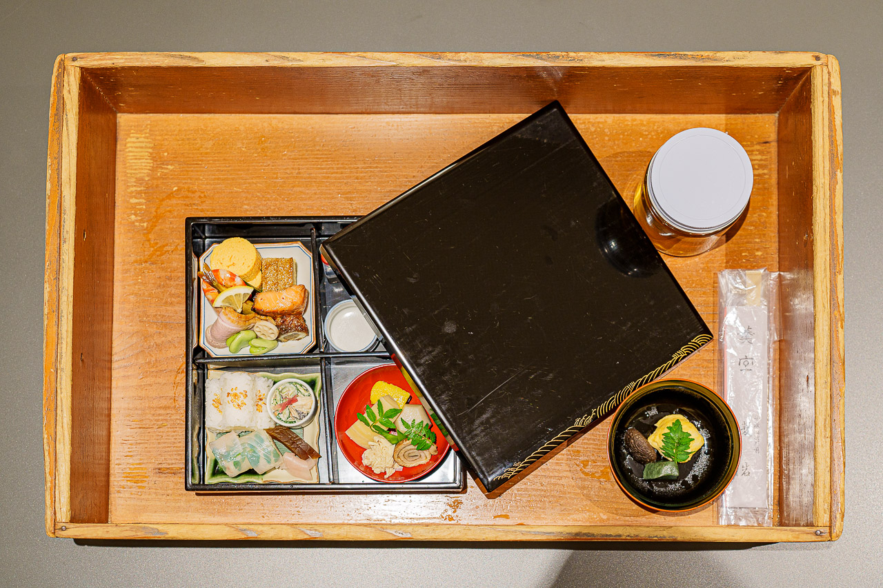 시다시 마츠카도 도시락을 전달을 받으면 커다란 나무상자에 고급스러운 합이 들어가 있습니다.