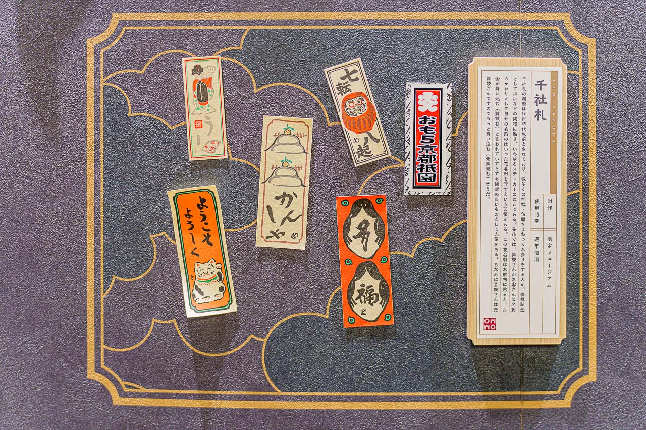 벽의 한켠에는 교토를 대표하는 오브제들이 잔뜩 걸려 있습니다.
