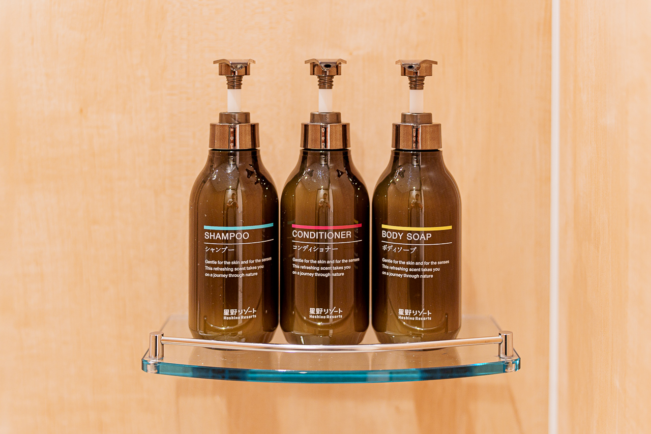 구석에는 유료 파자마와 어메니티가 비치되어 있습니다.