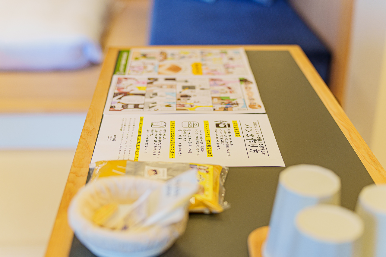1,000엔을 내고 조식을 신청하면 홈 베이킹을 할 수 있는 재료를 받을 수 있습니다.