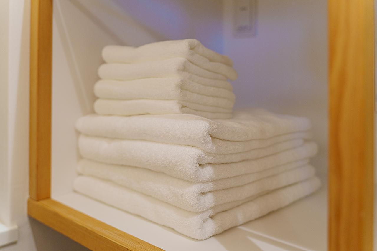 4명까지 이용 가능한 방이라 페이스 타월과 바디 타월이 4장씩 준비되어 있습니다.
