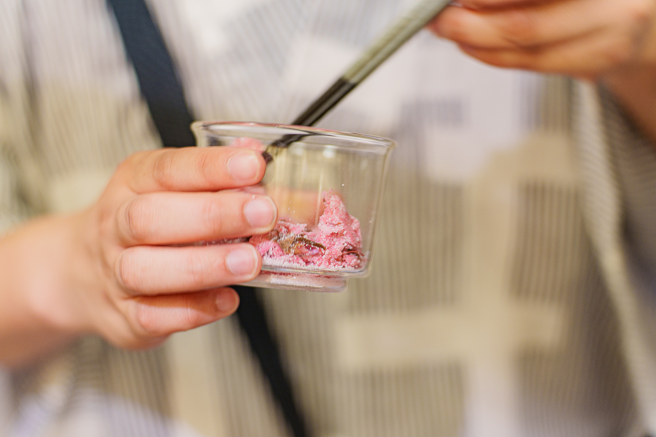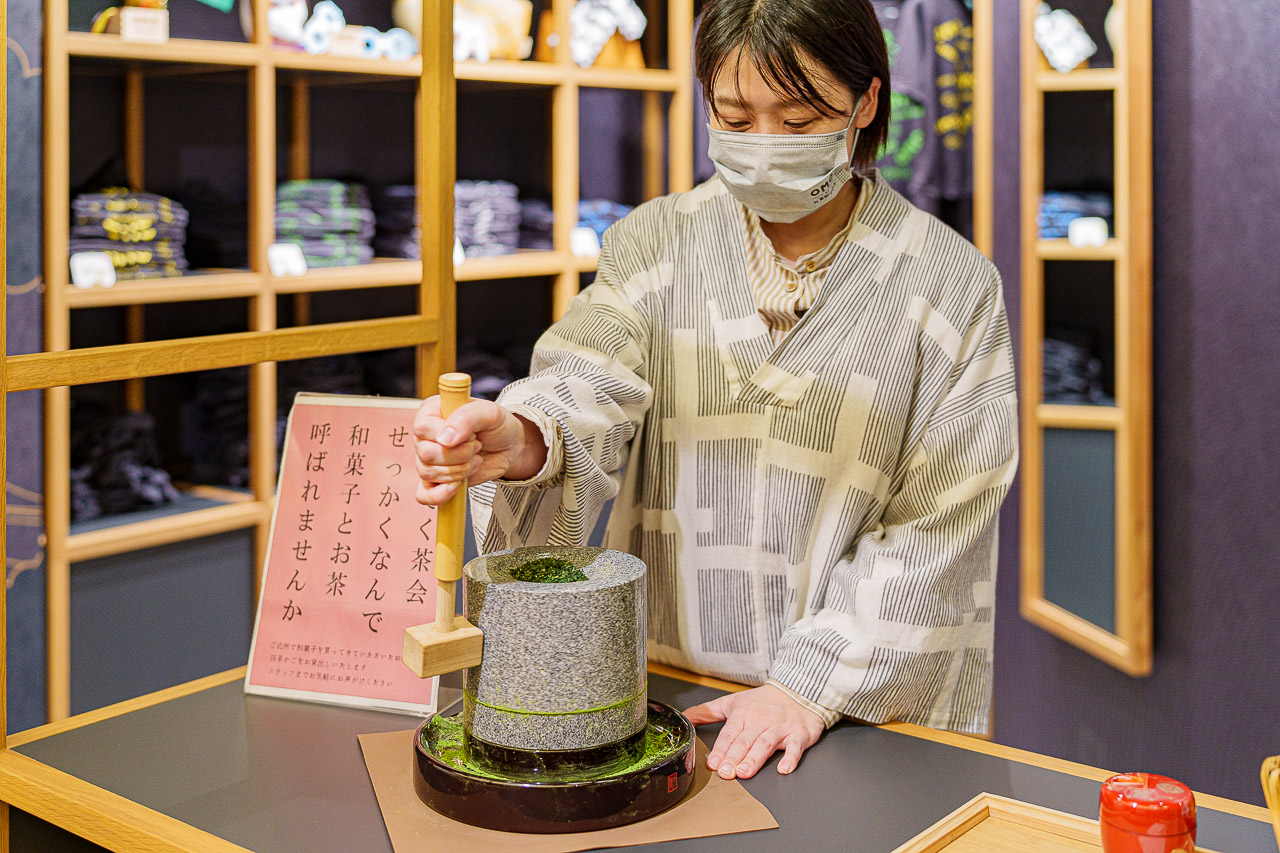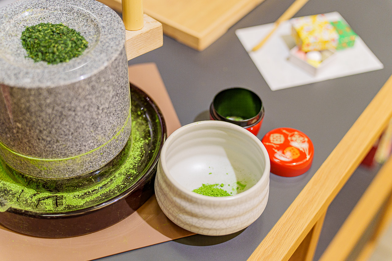 맷돌로 직접 말차를 갈아볼 수 있는 귀중한 체험.