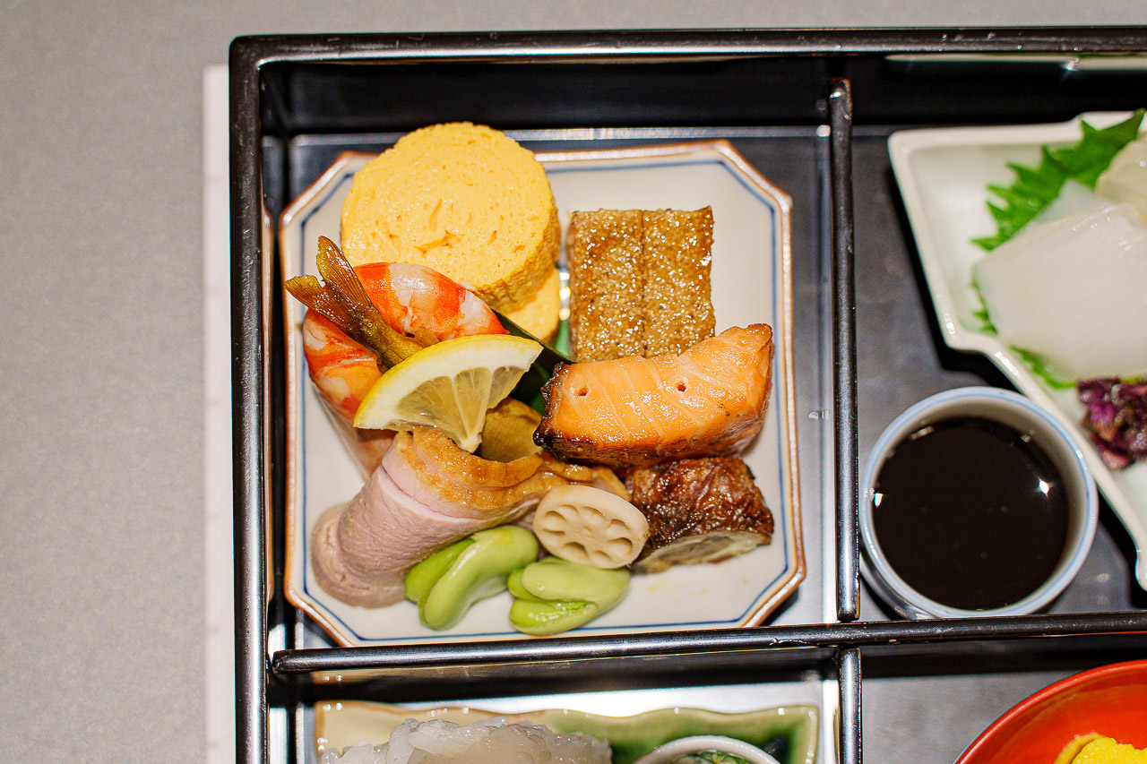 숙박 3일 전까지의 예약이 필요하고 "매화" 3,240엔, "시다시 달 도시락" 4,320엔, "시다시 마츠카도 도시락" 5,400엔 중 하나를 주문할 수 있습니다. 이번에는 시다시 마츠카도 도시락을 예약하였습니다.