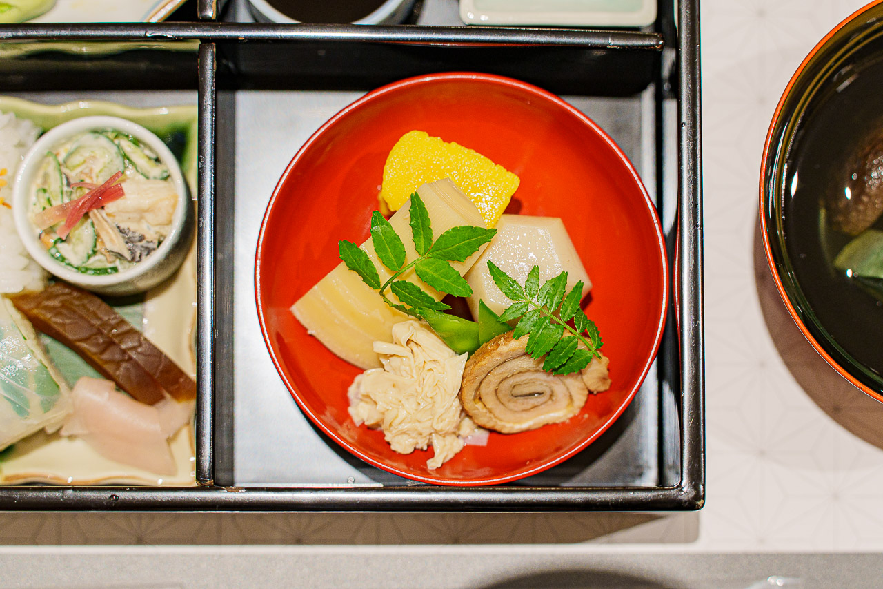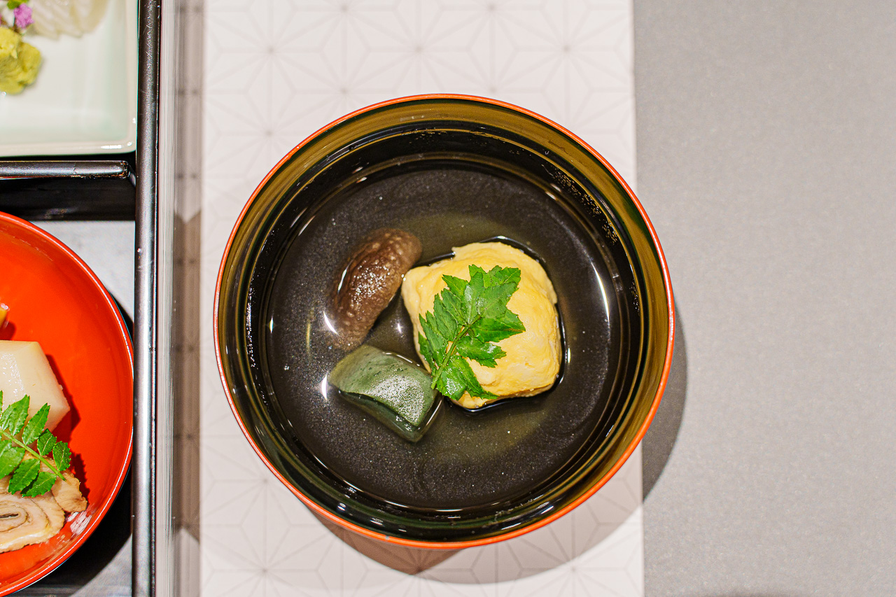 부드러운 죽순과 유바, 장어, 계란말이, 토란