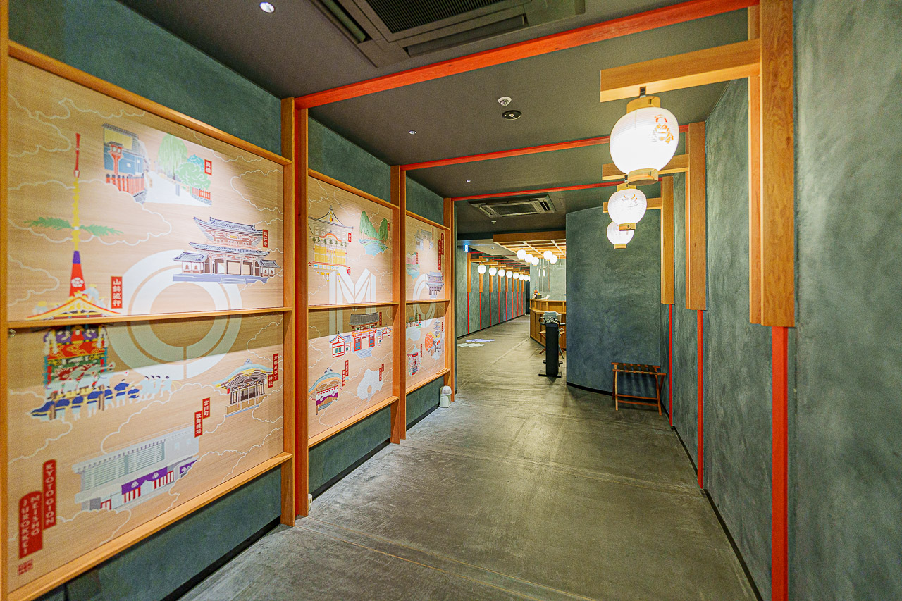 벽면에는 기온의 유명한 사찰을 상징하는 일러스트가 그려져 있습니다.