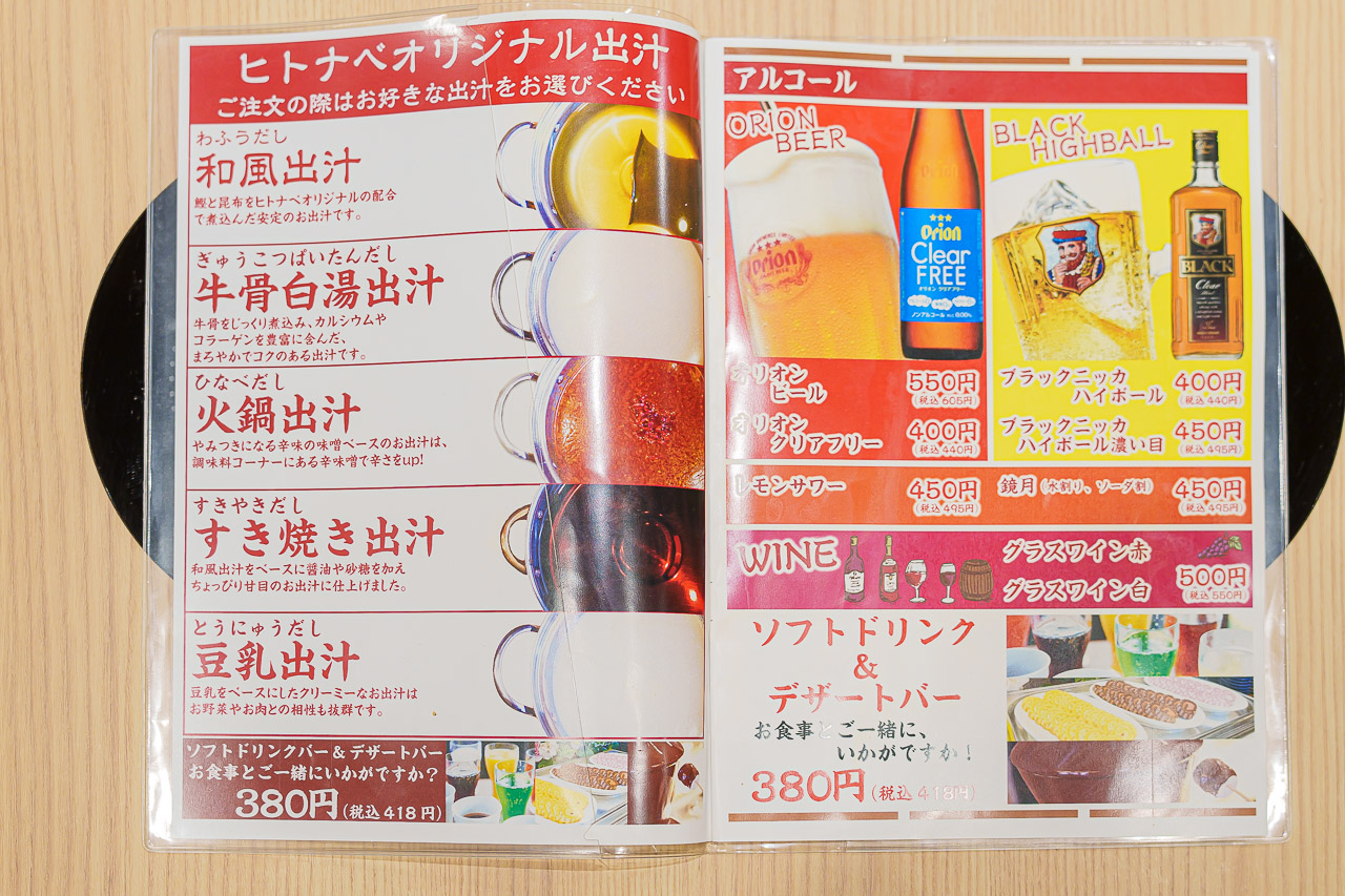 국물 추가는 공짜, 나베 국물 변경은 1회당 120엔으로 여러 가지 맛을 맛볼 수 있는 것도 장점입니다.