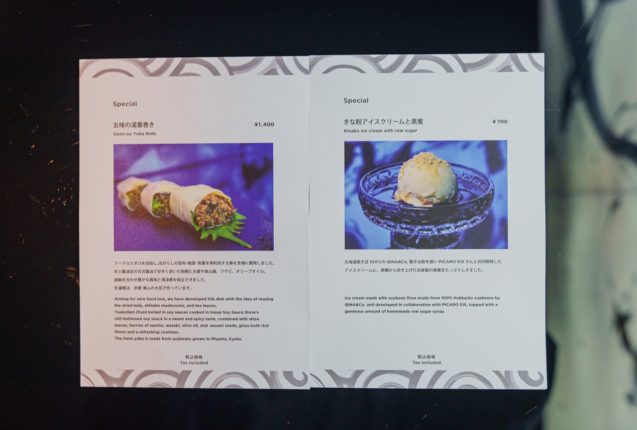 유바 말이 안에는 다시마, 표고버섯, 찻잎이 들어가고 유명 간장가게인 "이노우에"의 간장과 와사비, 올리브 오일을 사용하여 맛있었습니다.