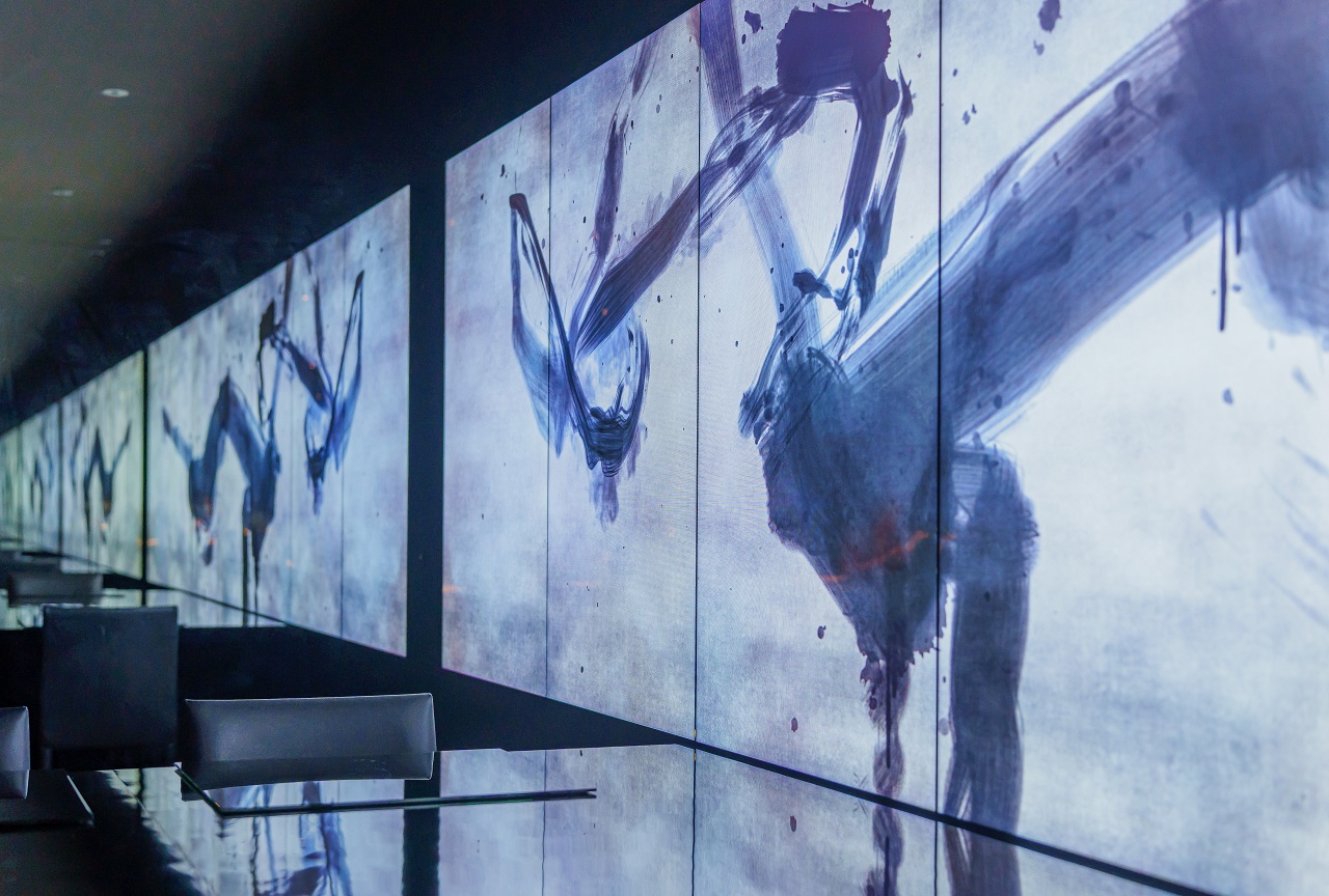 내부에는 전면 스크린에서 쉴 새 없이 움직이는 디지털 아트 갤러리가 설치되어 있습니다.