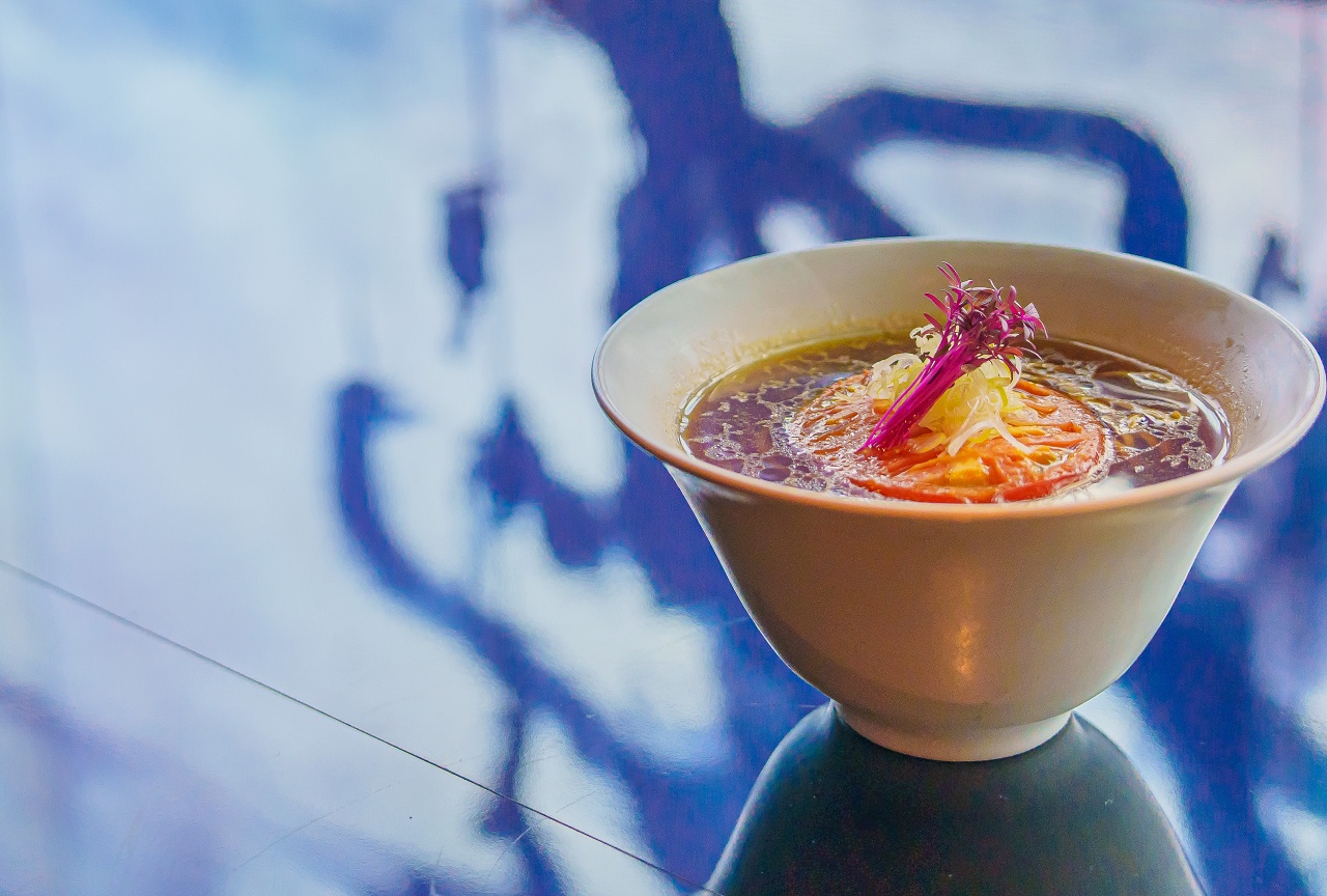 야채나 약초로 유명한 교토 오하라에서 따낸 8가지의 풀을 귀리와 옥수수와 매운 된장을 합친 차가운 수프에 냉수로 잘 씻은 수제 국수를 넣었다고 합니다.